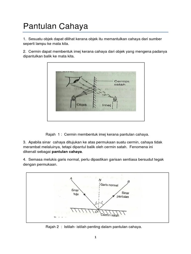 Ciri imej pantulan cahaya oleh cermin satah online worksheet for grade 10. Sinar cahaya yang menuju ke satah pantulan (permukaan cermin) pada suatu sudut tuju (angle of incidence), i, akan dipantulkan pada suatu .